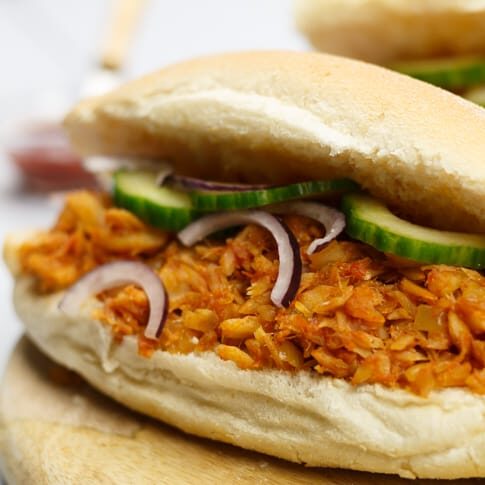 Hartig broodje gevuld met Surinaamse kip kerrie.